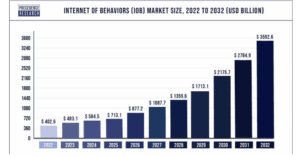 The prediction of the Internet of Behaviors market size by 2032, places it at over 3592.6 billion dollars in 2032 after growing at a Compound Annual Growth Rate (CAGR) of 24.97% between 2023 and 2032 starting from 402.6 billion dollars estimates or performance evaluations done in 2022. IoB’s impact is expected to be significant across customer experience, healthcare, and tailored marketing.