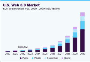 In 2023, the global Web 3.0 market was estimated to be worth about USD 2.25 billion. This figure is set to grow at a compound annual rate of 49.3% from 2024 to 2030 while becoming more widely adopted amongst other platforms and applications by 2024. This adoption will profoundly change our digital interactions.